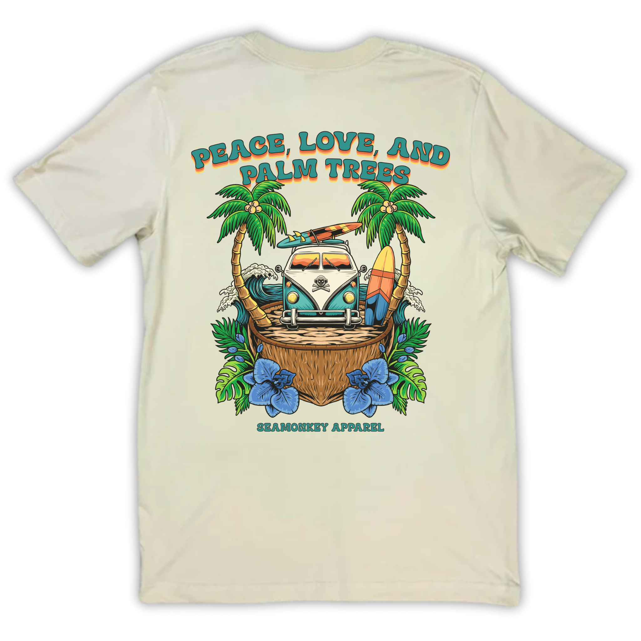 We utilize premium materials for ultimate comfort (like a vaction on your body) and special printing processes for soft (not sticky) prints with a vintage appeal.